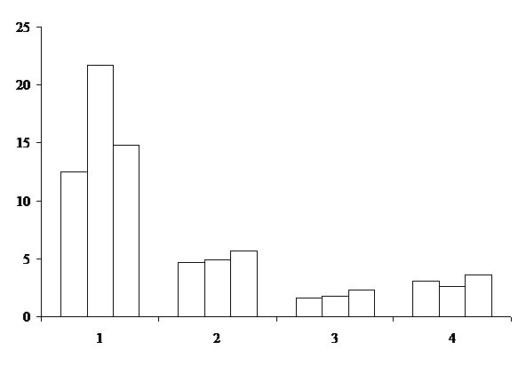 На основании таблицы (см. приложение) можно построить графики структуры поступлений налогов, уплаченными иностранными организациями в федеральный бюджет, долю этих поступлений, темпы роста и долю в бюджете РФ.